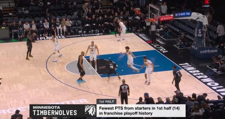 配资坊股票配资网址 太难了!森林狼首发半场仅拿14分 创队史季后赛首发得分最低纪录